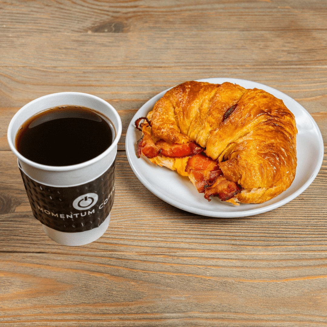 Delicious grab and go breakfast or snack. 12 oz coffee & choice of breakfast croissant
