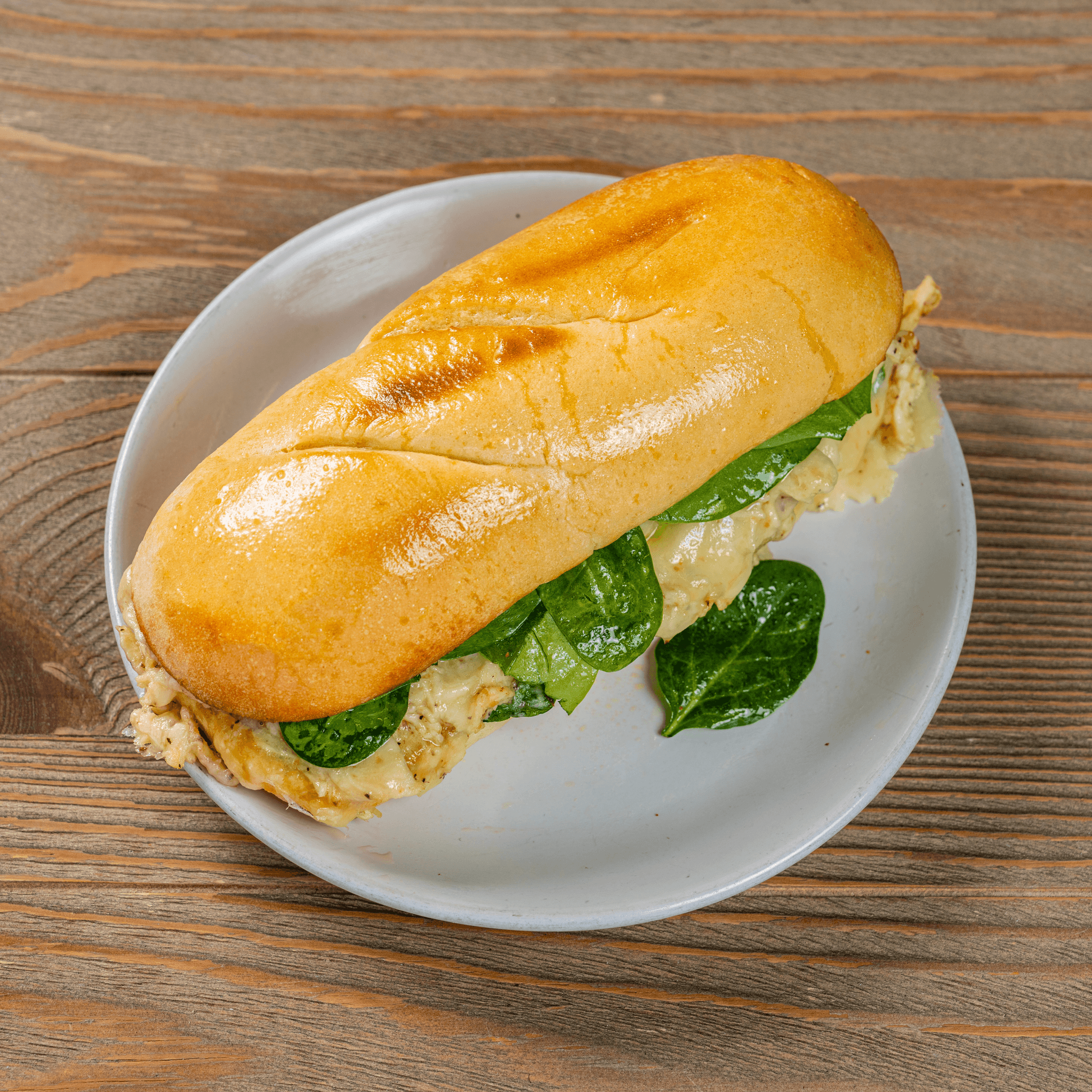 Shredded chicken tossed in cool Caesar sauce on a sub, topped with melted mozzarella cheese, and served with a side of crispy chips. All hail Caesar—the king of flavor!