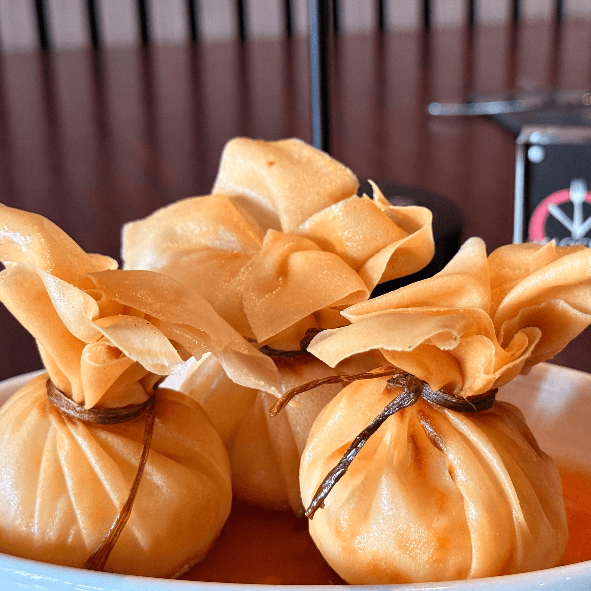 Thin pastry filled with ground chicken and vegetables, fried to perfection, served with sweet brown sauce