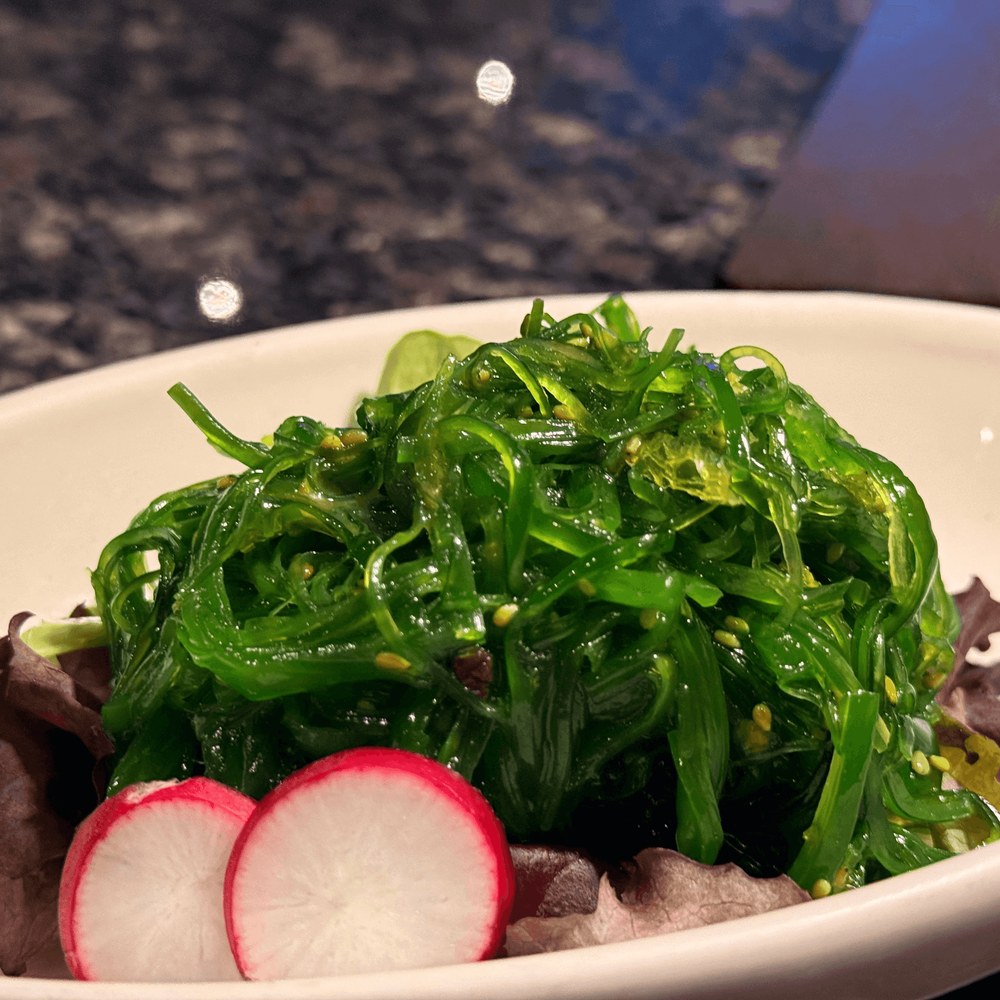 Assorted seaweeds and radish, marinated in sesame vinegar dressing
