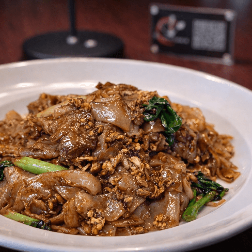 Thai-style big flat rice noodles, Chinese broccoli, and egg, stir-fried with sweet soy sauce
