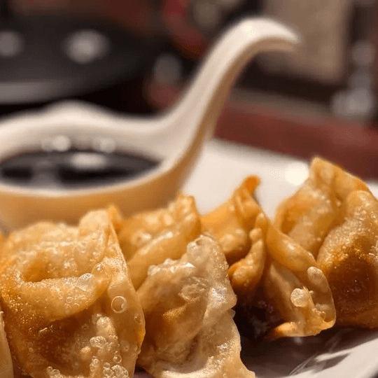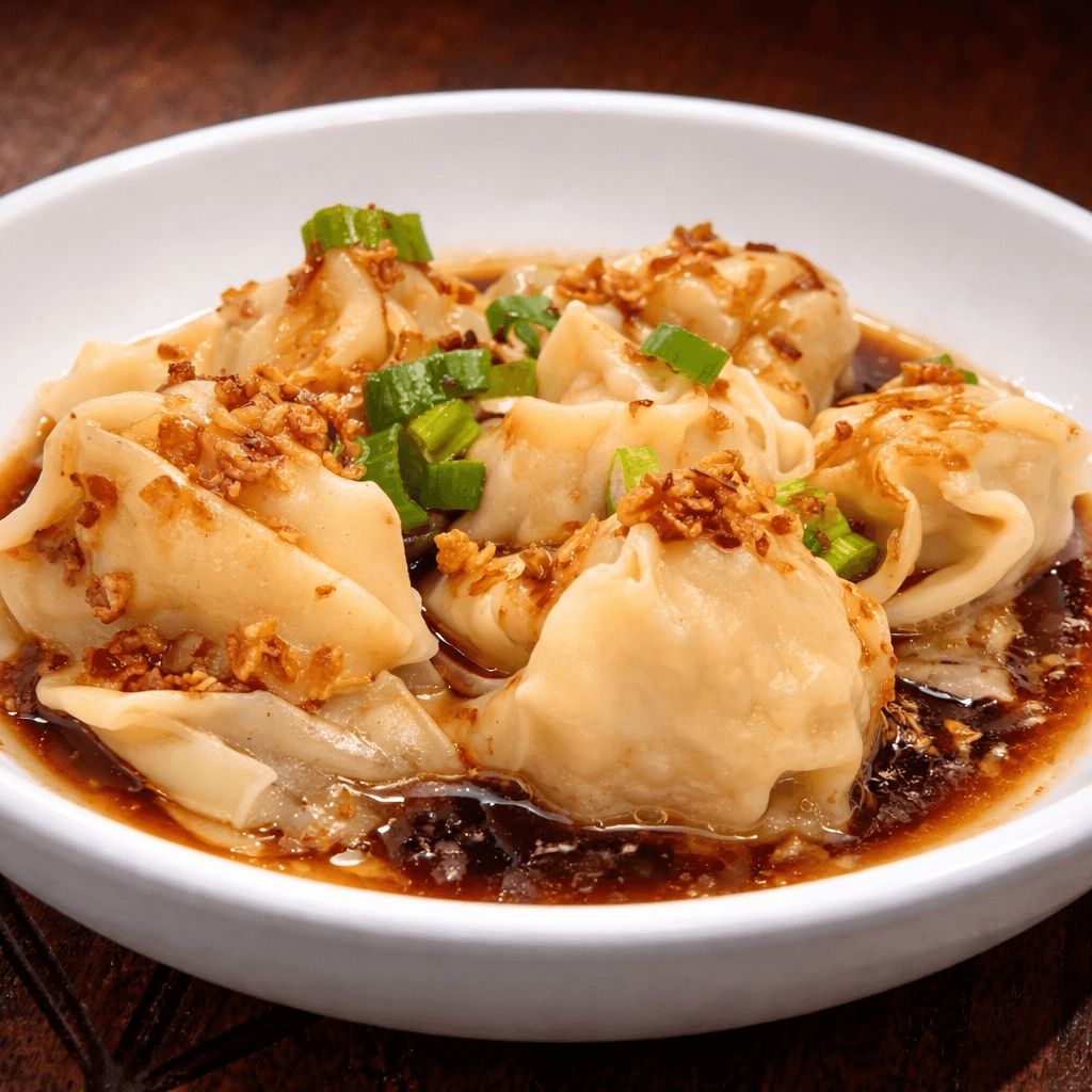 Our wontons are filled with shrimp and pork. These flavorful bites are then topped with cilantro, scallion, and a chili soy sauce