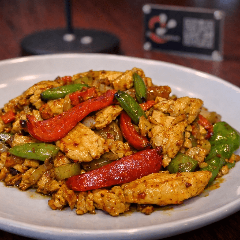 Your choice of meat is stir-fried with celery, onions, bell peppers, and curry powder