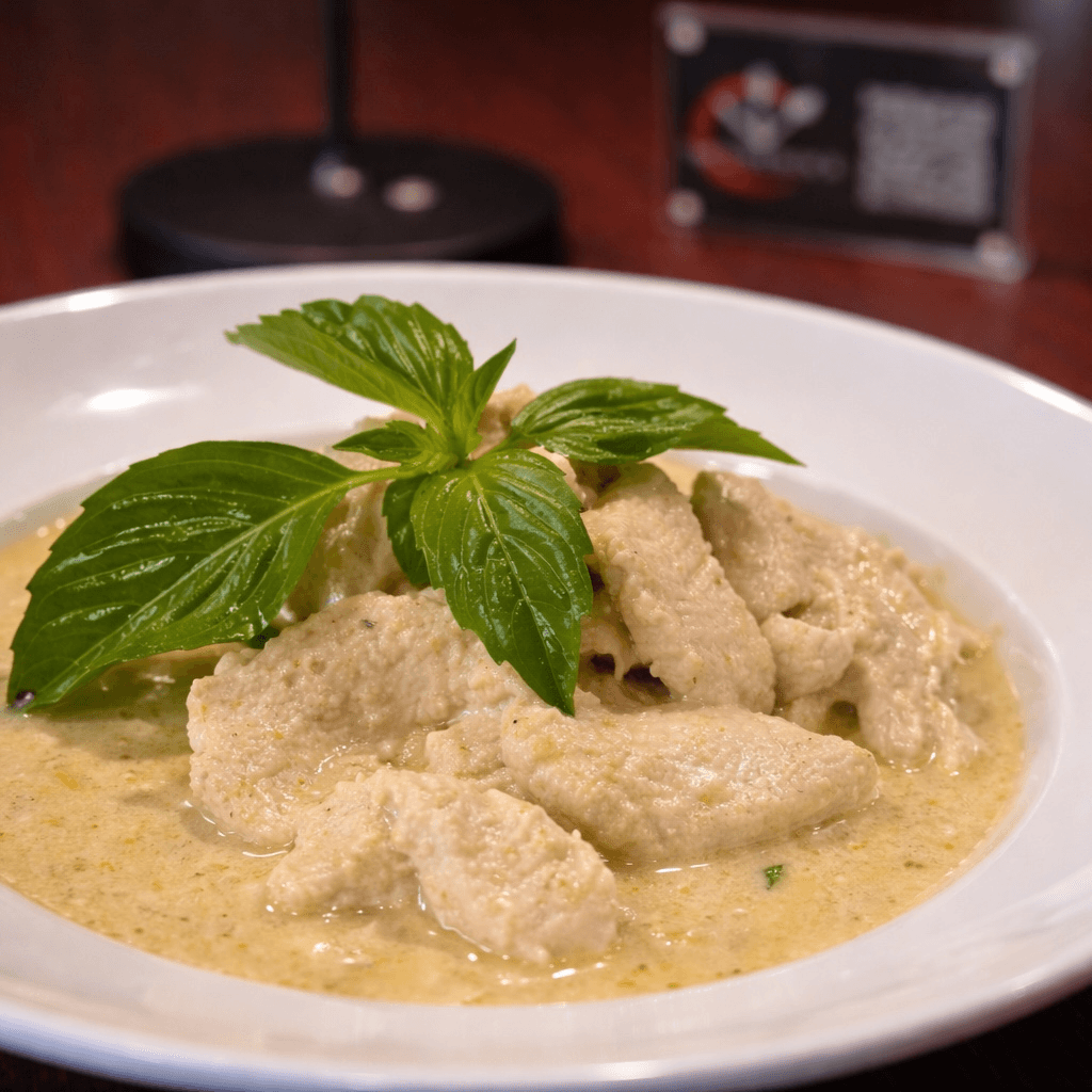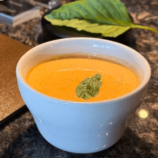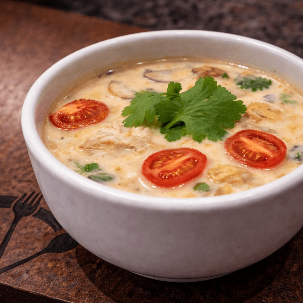 A delightful creamy soup with coconut milk, fragrant, and an elusive flavor of galangal