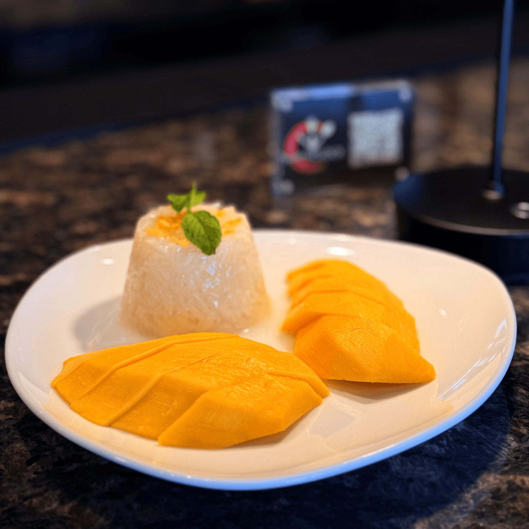 Seasonal mango with homemade sweet sticky rice, topped with silken coconut milk infusion, and mung bean. Available for limited time only!
