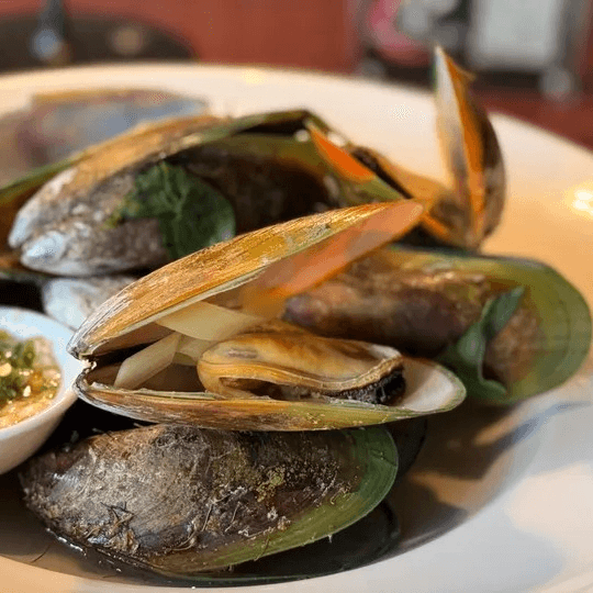 New Zealand green mussels carefully steamed till perfection, choice of Thai herb style or yellow curry