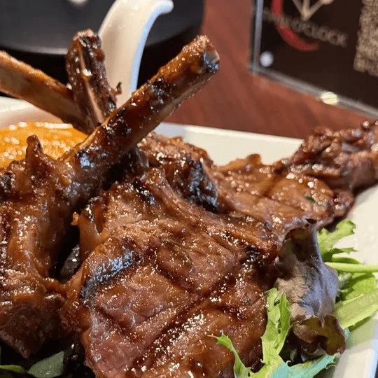 A selection rack of New Zealand Lamb marinated with garlic, white pepper, and cilantro grilled to perfection. Served with peanut sauce