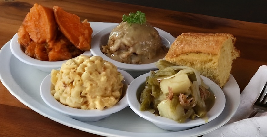 Comes with choice of 3 of the following sides: mac & cheese, yams, cornbread dressing, potato salad, cajun red beans & rice, rice and gravy, rice, collard greens, string beans with potatoes (cornbread included)