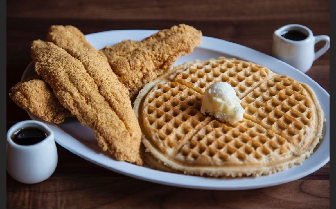 Choose 1/4th dark fried chicken, 3 wings or breast and wing with 2 waffles