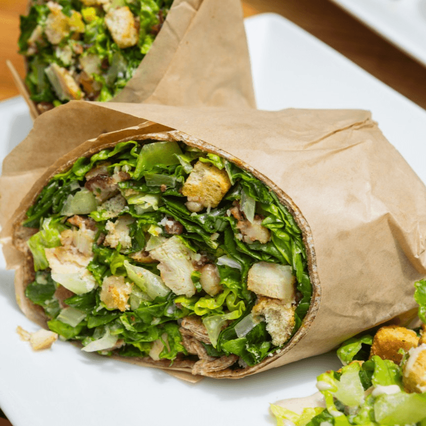 Whole wheat wrap, romaine lettuce, parmesan cheese, bacon, grilled chicken, truffle Caesar dressing.