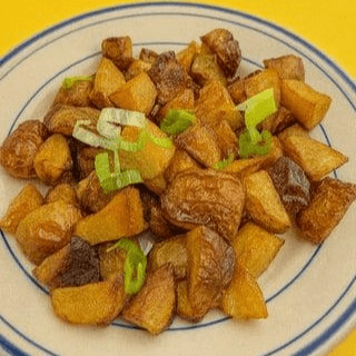 Roasted yellow potatoes, onions, and bell peppers topped with spicy chorizo, melted pepper jack cheese, and two eggs any style, served with a homemade biscuit.