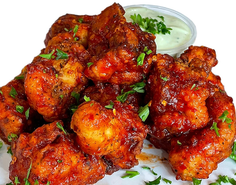 Crispy and battered or tossed in your choice of buffalo or jerk sauce