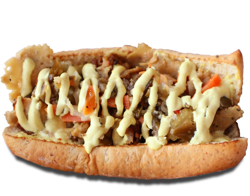 Juicy seitan dipped in our Italian au jus served on a hoagie roll with soy cheese and jardinière