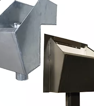 At Chicago Metal we always have 12" scupper boxes in stock, ready to go. Stock boxes come in Galvazined G90, and Prefinished Kynar 24ga steel (colors: Matte Black, Bone White, Mansard Brown, and Dark Bronze). We can also make TPO and PVC covered scupper boxes. You can take your outlet and install it yourself, or you can have it installed in house (wait times may vary). We can make any custom scupper box the job requires, out of whatever material is needed.