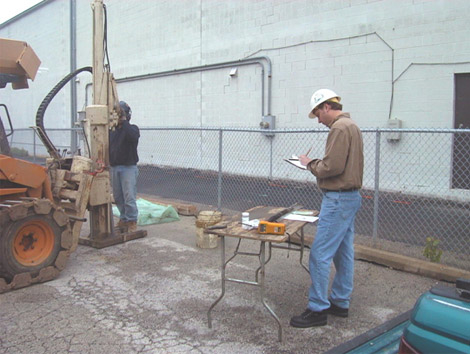 Soil and groundwater testing is often performed as part of a Phase II Environmental Site Assessment (ESA). For example, if an underground gasoline storage tank was discovered during the Phase I ESA, ECG may design a soil and groundwater testing project that involves installing soil borings around the underground tank. Soil samples would be collected and analyzed for gasoline indicator contaminants, such as benzene, to determine whether the soil surrounding the tank is contaminated. The scope of work for a Phase II ESA, or subsurface investigation, involving both soil and groundwater testing might include: A site visit to layout the boring locations and groundwater monitoring well locations. Advancing soil borings in selected areas of the site. The soil borings would be drilled to a depth of approximately 16 feet below grade surface. Collecting soil samples for field screening, and selecting soil samples for laboratory analysis. Analyzing soil samples for volatile organic compounds (VOCs), benzene/toluene/ethylbenzene/xylenes (BTEX), methyl tertiary butyl ether (MTBE), semi volatile organic compounds (SVOCs), polynuclear aromatics (PNAs), total metals (metals), pH, and dry weight. Installing groundwater monitoring wells to depths of approximately 20 feet. Developing and surveying the wells. Collecting five groundwater samples and having them analyzed for VOCs and SVOCs. Completing a Phase II ESA or a Subsurface Investigation Report summarizing the field activities and analytical work. ECG has extensive experience with all aspects of soil and groundwater testing. We conduct subsurface investigations regardless of whether we conducted the Phase I ESA or any other environmental work on the property. To receive a quote for testing services, contact an ECG representative at 312.663.3900.