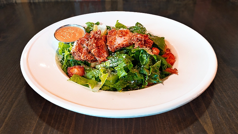 farm fresh romaine, grated parmesan, broiche croutons, zesty caesar dressing, buttermilk fried chicken.