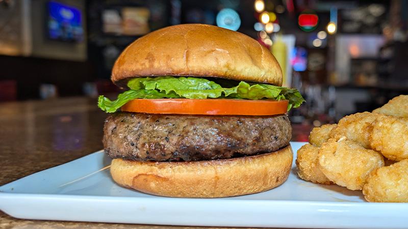 half-pound grass-fed american bison. load it up to your heart's desire. (lettuce and tomato for illustrative purposes)