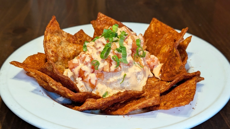 house smoked salmon spread, cream cheese, scallions, anejo-agave papaya salsa, gochujang crema and our own saison chips