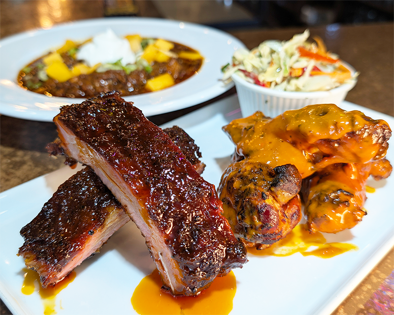 It's a Football Fan's dream with 2 Smokey Mop BBQ Ribs, 3 Signature Buffalo Wings, our award-winning Smokehouse Chili plus Jalapeno-Cilantro Slaw. ONLY available on Mondays and Thursdays during the NFL Season.
