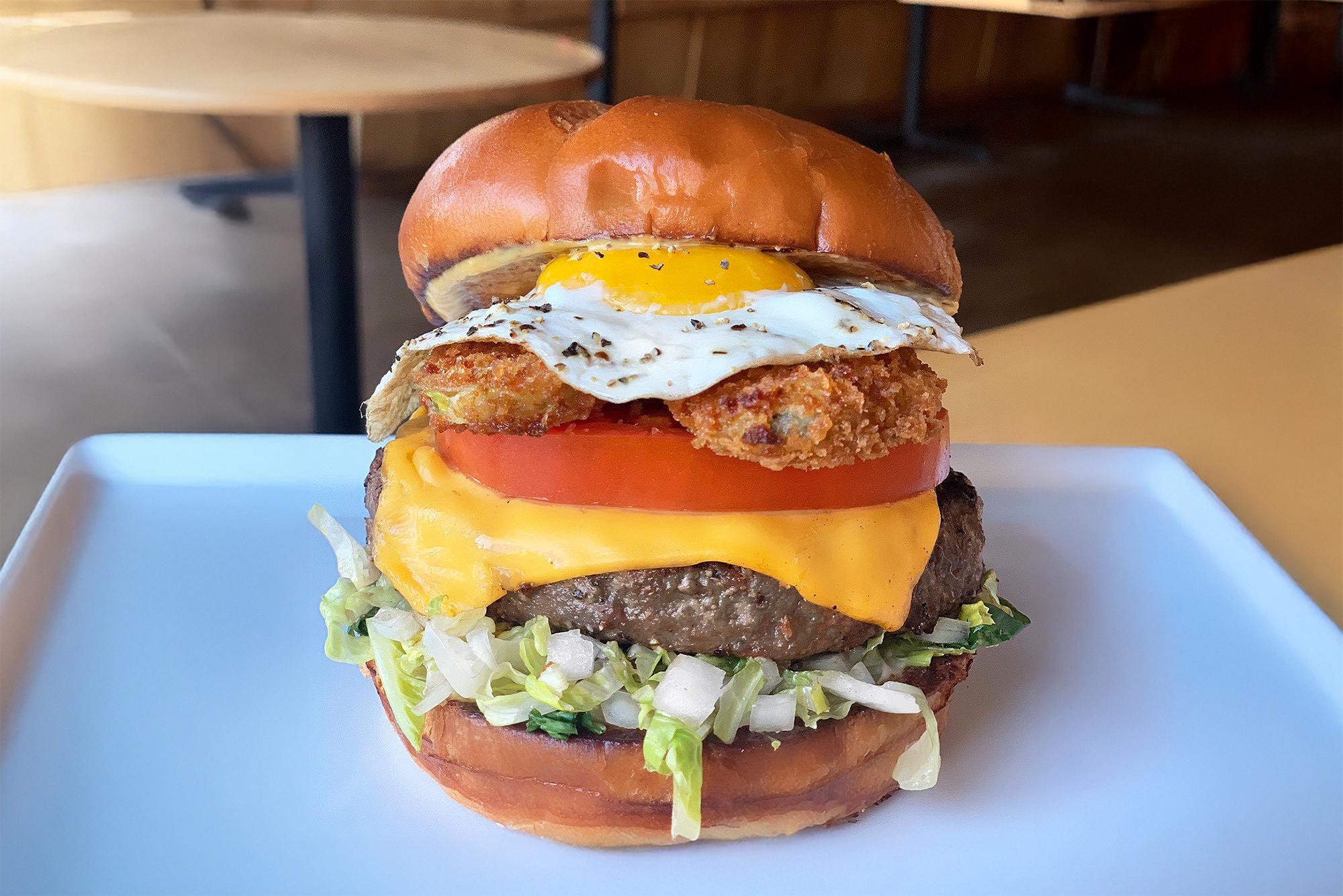 double american cheese, lettuce, onion, tomato, fried pickles, sunny fried egg, our urban sauce + bacon brioche bun