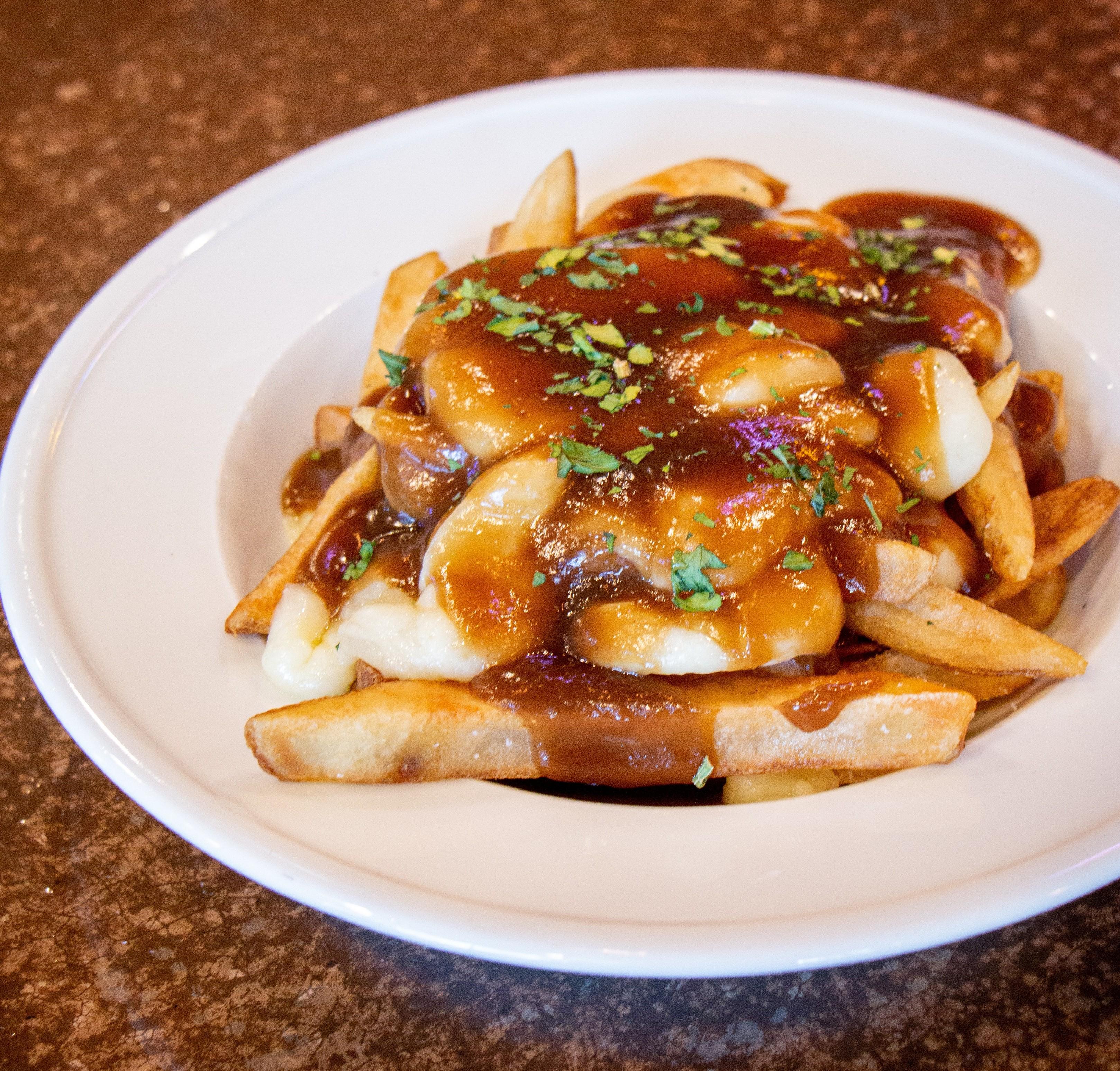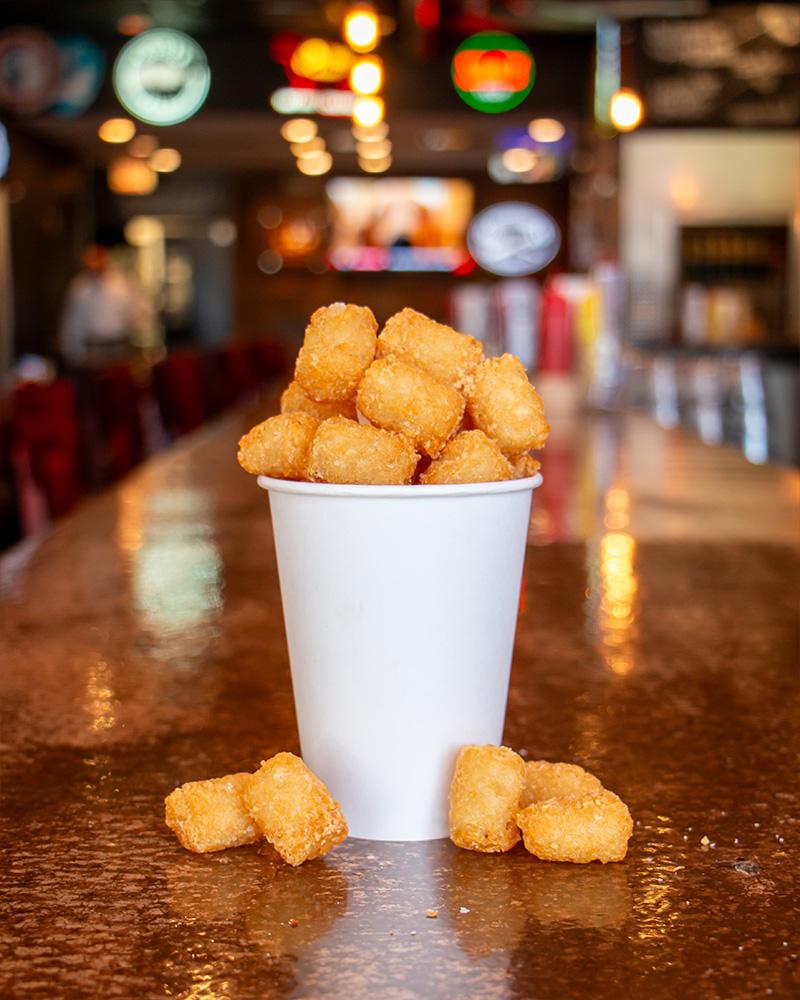 choose a base of fries or tots and we'll top it off with white cheddar cheese curd & beef gravy
