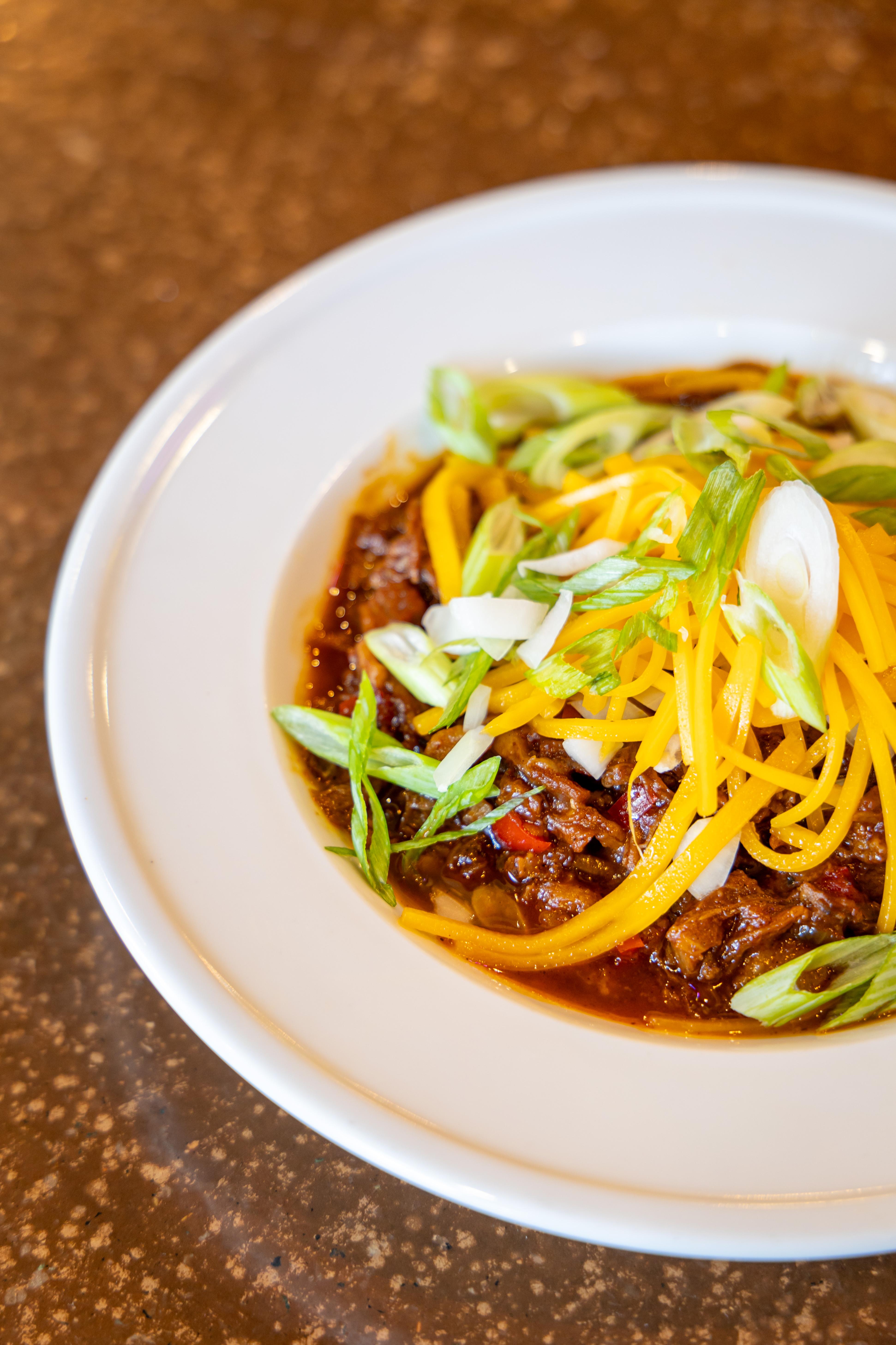 award-winning smoked brisket chili, 1837 red ale, signature smokey mop sauce, topped with sour cream, aged cheddar, scallions