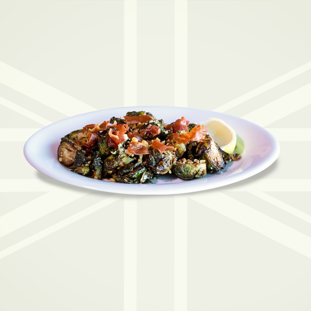 flash fried brussels sprouts with maple butter, lemon, crushed walnuts & crispy prosciutto.
