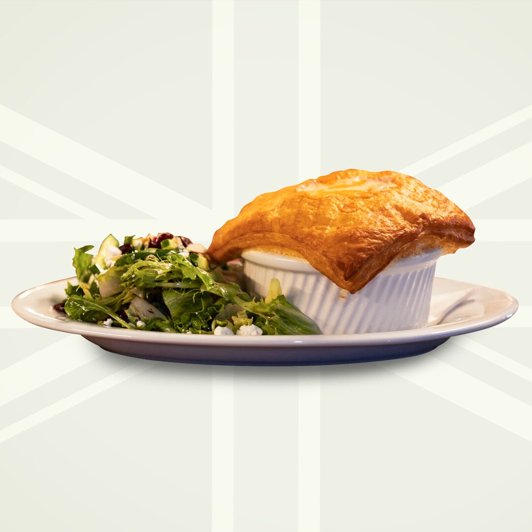 chicken, vegetables & fresh herbs in a light cream sauce, baked with a flaky puff pastry cap. served with a noble house salad.