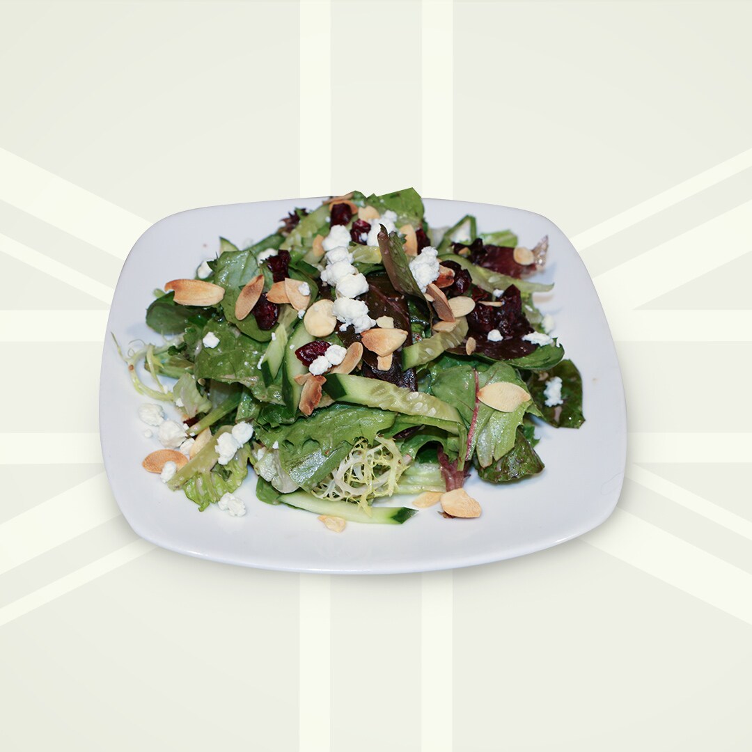 mixed greens, almonds, goat cheese, cucumbers & dried cranberries. tossed in red wine vinaigrette.