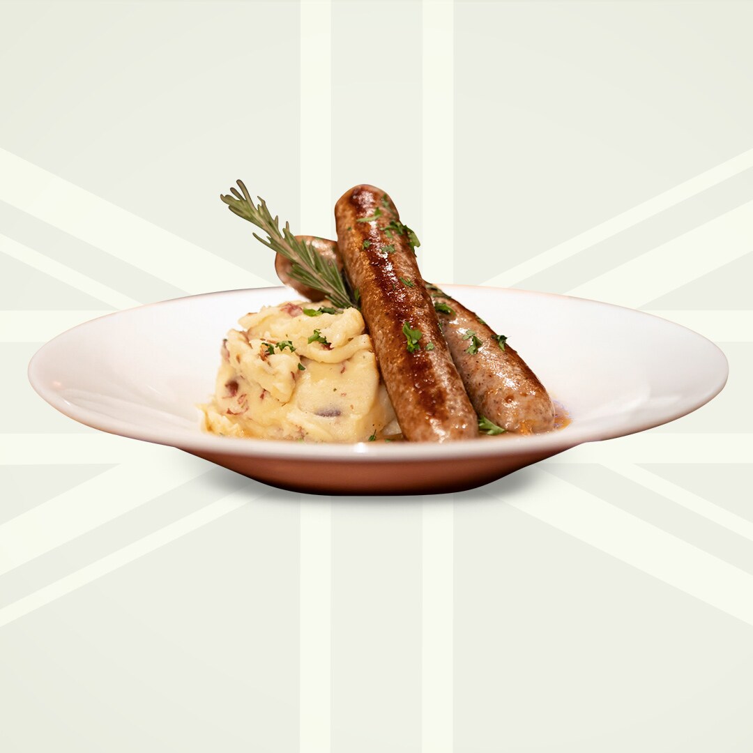 english bangers, with garlic mashed potatoes & our rich beef dripping gravy.
