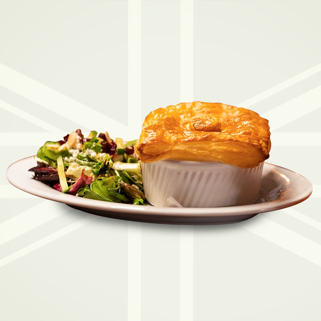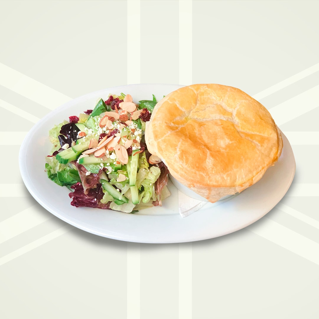 sirloin, onions, tender mushrooms & fresh herbs in a rich beef gravy, baked with a light puff pastry cap. served with a noble house salad.
