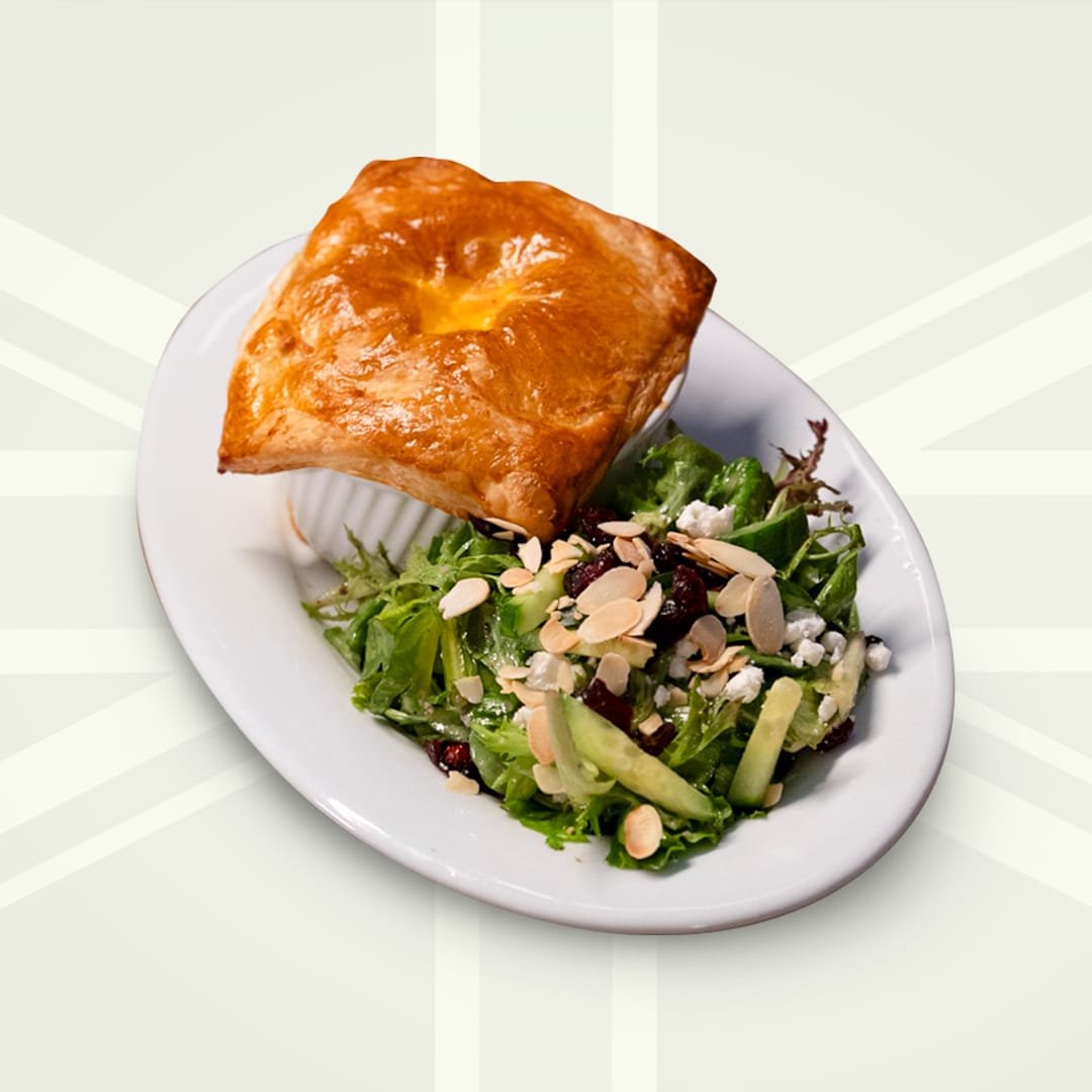 chicken, vegetables & fresh herbs in a light cream sauce, baked with a flaky puff pastry cap. served with a noble house salad.