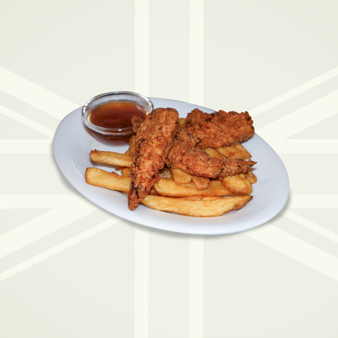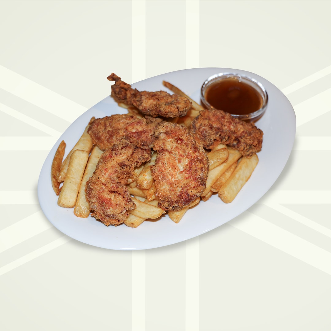 buttermilk brined, hand breaded chicken tenderloins served with honey mustard & golden fried chips.