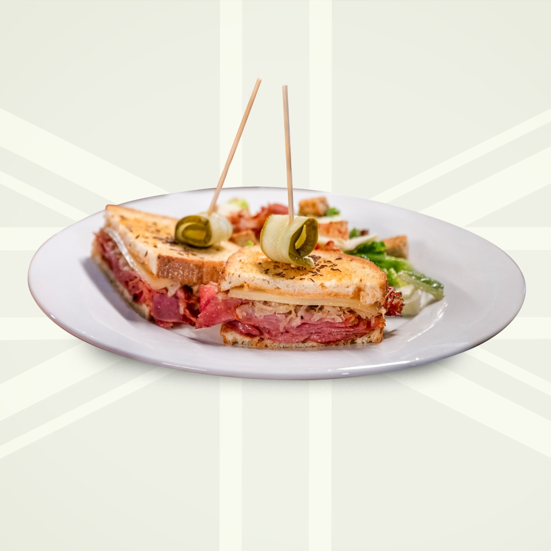 grilled rye bread with shaved corned beef, swiss cheese, sauerkraut & our house made thousand island dressing.