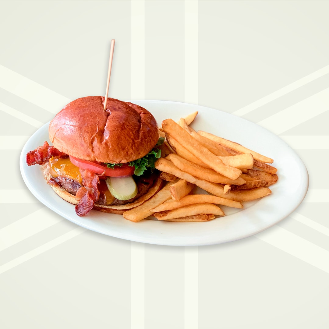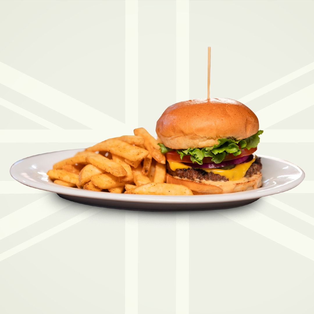 house made burger sauce, lettuce, tomato, onion, pickle & american cheese.