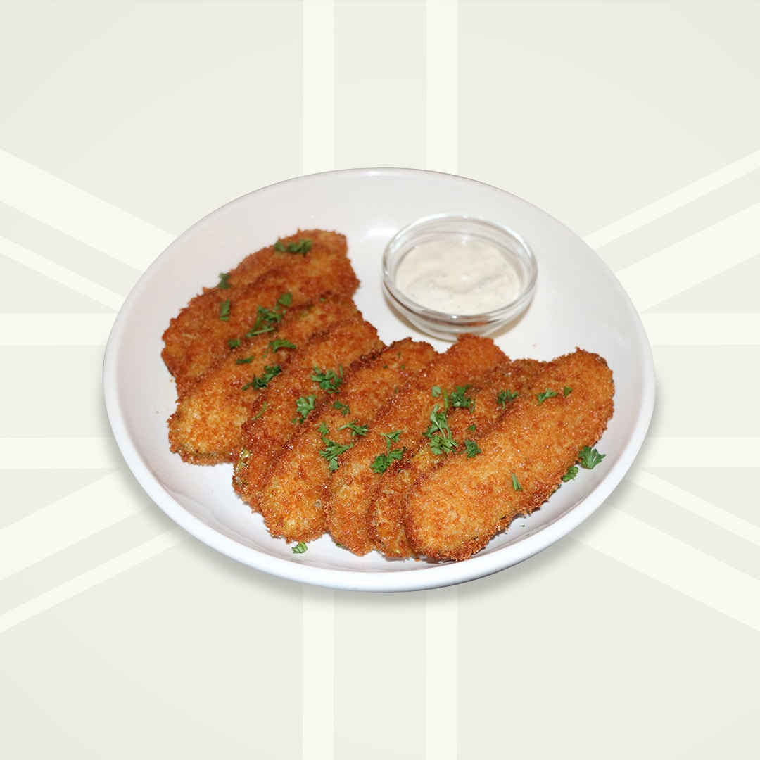dill pickle chips coated in a light cornmeal breading with a hint of spice. served with house burger sauce.