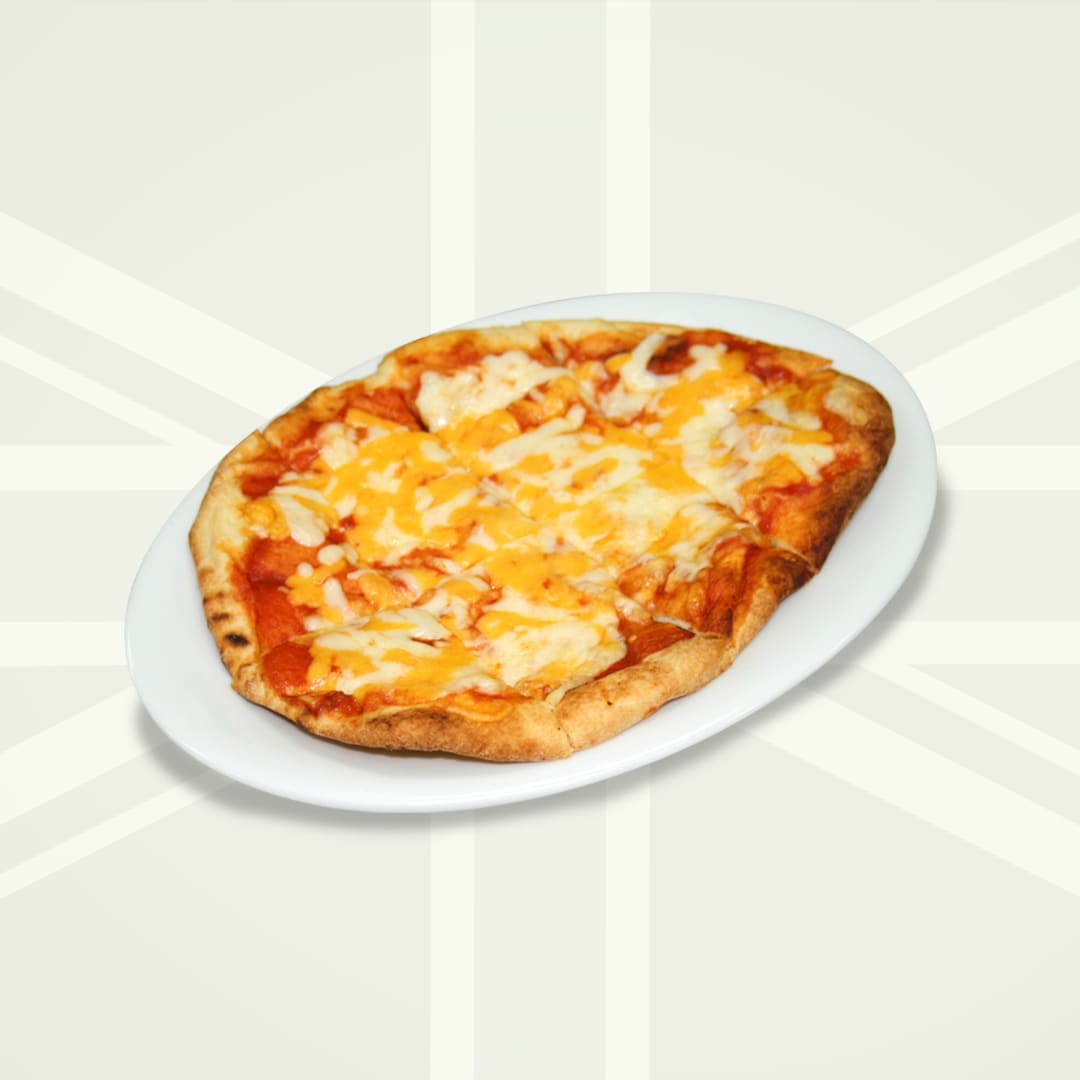 pizza sauce & mixed cheese on a flatbread crust.