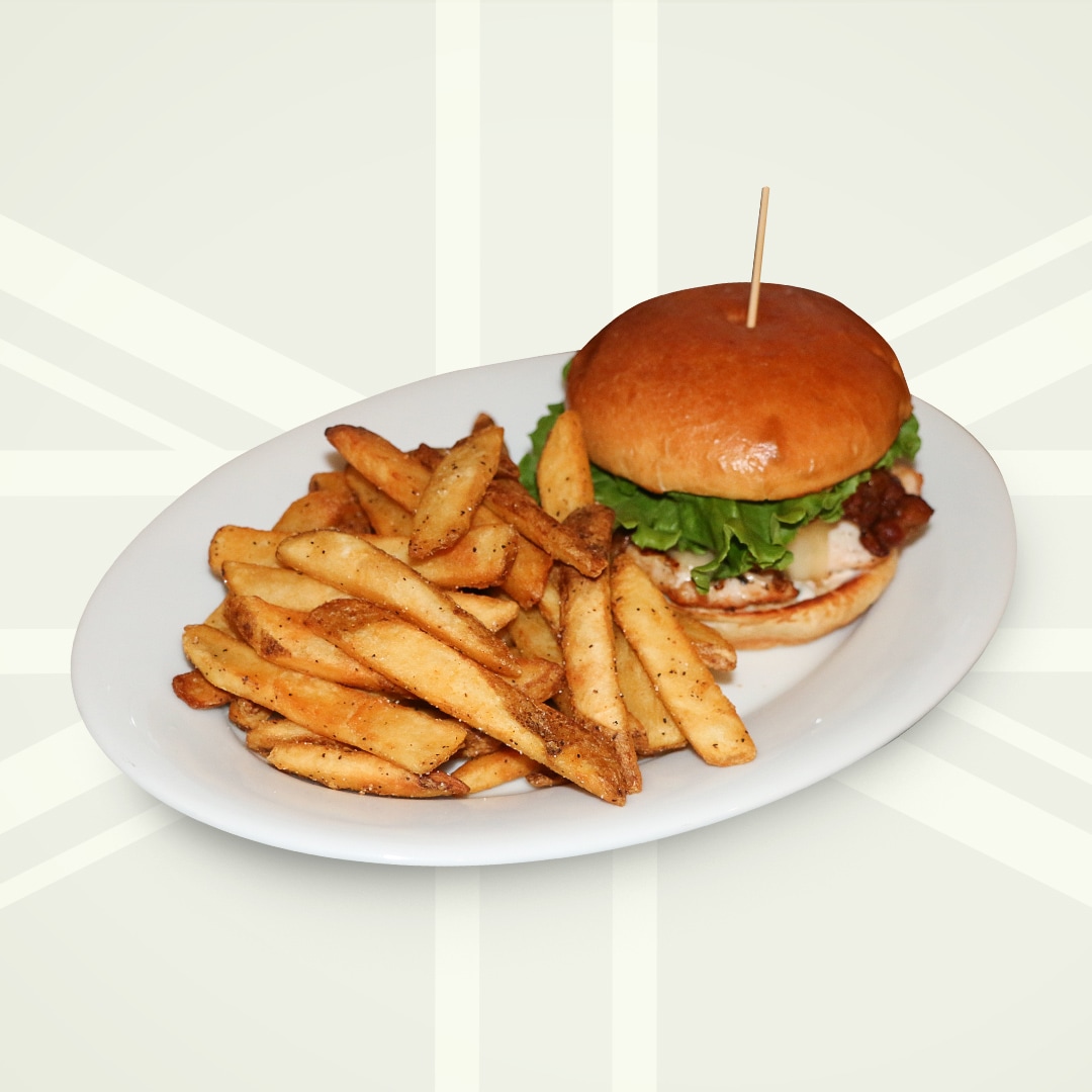 grilled chicken breast, swiss cheese, lettuce, tomato, peppercorn bacon & chipotle aioli on a brioche bun.