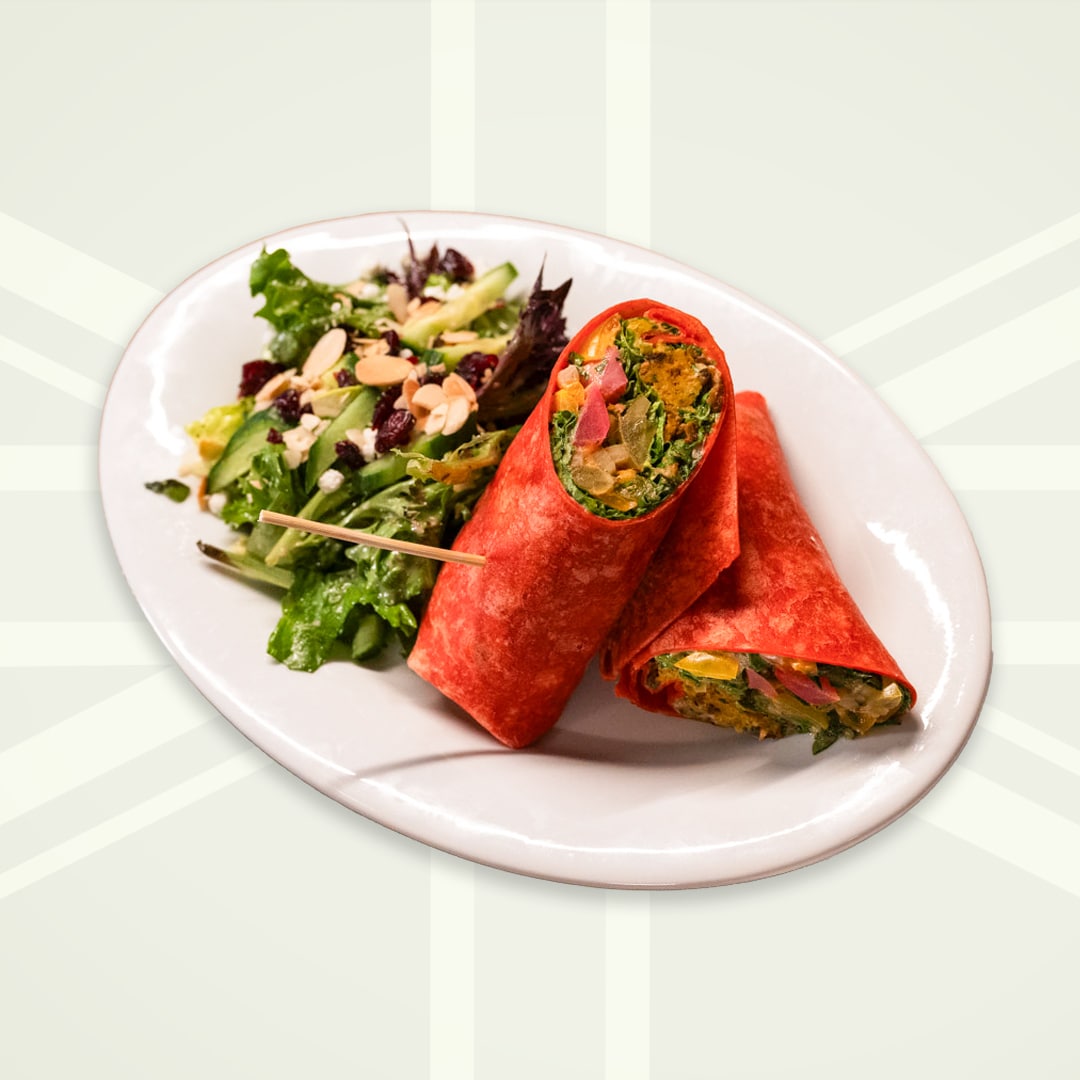 house made falafel balls, onions, pickled turnips, shredded romaine, diced pickles, garlic marinated tomatoes, tahini sauce & a hint of sriracha, wrapped in a tomato tortilla.